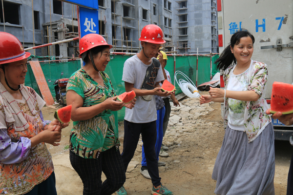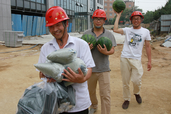 “屋外鐵板燒,屋內(nèi)洗桑拿”,近日,我市迎來入夏以來的連續(xù)高溫天氣。7月26日上午,集團(tuán)工會主席、總裁助理鄭培波,總裁助理、工會副主席王嘉等一行冒著酷暑來到集團(tuán)各單位,開展了“送清涼”活動,傳達(dá)了集團(tuán)領(lǐng)導(dǎo)對堅守崗位的一線干部職工的關(guān)懷和慰問。 活動中,慰問組一行先后來到興業(yè)大連花園售樓處、物業(yè)服務(wù)中心、綠化施工現(xiàn)場、工程項目部、三期建設(shè)工地,以及匯川建材、興業(yè)機械、興業(yè)汽配、玉馬建材等單位,看望慰問烈日下辛苦勞作的一線興業(yè)員工。 “切西瓜、聊家常、送祝!,每到一處,鄭培波等一行代表集團(tuán)工會把提前準(zhǔn)備好的西瓜、綠豆、綠茶等降溫防暑食品一一分發(fā)到一線職工手中,并轉(zhuǎn)達(dá)了集團(tuán)領(lǐng)導(dǎo)班子對辛勤勞動和默默奉獻(xiàn)的一線職工的關(guān)懷和感謝。他說:“今天帶來的防暑物品并不是多么貴重,但代表著集團(tuán)的關(guān)懷和心意。”他要求各單位一定要高度重視防暑工作,合理調(diào)整工作時間,備齊防暑用品,一線工作人員要加強勞動保護(hù),提高自我保護(hù)意識,做到平穩(wěn)安全度夏。 據(jù)了解,我集團(tuán)“夏送清涼”活動已經(jīng)連續(xù)舉辦多年,成為我集團(tuán)工會的一項常規(guī)工作,展示了我集團(tuán)“有情關(guān)懷,無情管理”的人性化管理理念。本次“送清涼”活動,集團(tuán)及各基層工會共走訪9個單位,100多個一線崗位,發(fā)放西瓜6000斤、綠豆1000斤、有機綠茶1500袋,受到廣大一線員工的一致好評。