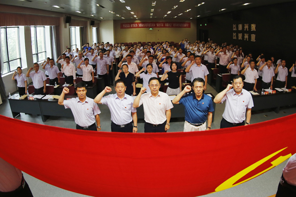 6月30日,在中國共產(chǎn)黨96歲生日的前一天下午,中國共產(chǎn)黨日照興業(yè)集團(tuán)第三次代表大會(huì)在興業(yè)大廈二樓會(huì)議室勝利召開。集團(tuán)常務(wù)副總裁趙文強(qiáng),副總裁申作華、丁兆良、王玉劍出席會(huì)議,工會(huì)主席、總裁助理鄭培波主持會(huì)議,來自興業(yè)集團(tuán)各條戰(zhàn)線、各支部(總支)的黨員代表143人參加了會(huì)議。 下午3:00,全體與會(huì)黨員佩戴黨徽,共同唱響國歌,大會(huì)在莊嚴(yán)的氣氛中隆重開幕。會(huì)上,丁兆良同志首先帶領(lǐng)大家學(xué)習(xí)了全市非公黨建工作會(huì)議精神,申作華同志宣讀了《關(guān)于表彰2016年度優(yōu)秀共產(chǎn)黨員和優(yōu)秀黨務(wù)工作者的決定》,會(huì)議隨后對(duì)2016年度集團(tuán)各條戰(zhàn)線上涌現(xiàn)出的優(yōu)秀共產(chǎn)黨員和優(yōu)秀黨務(wù)工作者進(jìn)行了隆重表彰。 會(huì)上,趙文強(qiáng)同志代表集團(tuán)黨委,作了主題為《堅(jiān)定信念 擔(dān)當(dāng)有為 為推動(dòng)實(shí)現(xiàn)跨越發(fā)展和“興業(yè)夢”而努力奮斗》的工作報(bào)告。報(bào)告從融入大局、創(chuàng)新驅(qū)動(dòng)、品牌提升、產(chǎn)業(yè)調(diào)整、黨建工作五個(gè)方面,回顧了五年來集團(tuán)黨委取得的主要成績。報(bào)告明確,五年來,集團(tuán)黨委主要抓了三個(gè)方面的工作:一是堅(jiān)持黨委政治核心地位不動(dòng)搖,將“思想教育、公司治理、決策把關(guān)”融會(huì)貫通,把好了企業(yè)“風(fēng)向標(biāo)”;二是將黨建與企業(yè)經(jīng)營緊密結(jié)合,通過創(chuàng)新黨建工作載體,發(fā)揮了黨委在企業(yè)生產(chǎn)經(jīng)營中的主角作用,推動(dòng)了企業(yè)發(fā)展;三是始終把統(tǒng)領(lǐng)企業(yè)文化作為黨建工作的重點(diǎn)任務(wù),以黨工團(tuán)聯(lián)動(dòng)共建不斷培養(yǎng)誠信文化、共享文化和責(zé)任文化,塑造出具有興業(yè)特色的企業(yè)精神。 對(duì)于2017年及今后一段時(shí)期的工作,趙文強(qiáng)指出,集團(tuán)黨委將圍繞“提升高度、強(qiáng)化管理、推動(dòng)創(chuàng)新、實(shí)現(xiàn)跨越”的企業(yè)發(fā)展方針,發(fā)揮好“把方向、管大局、保落實(shí)”的領(lǐng)導(dǎo)核心作用,強(qiáng)化思想引領(lǐng)、隊(duì)伍建設(shè)、基層組織建設(shè)、管黨治黨主體責(zé)任和對(duì)群團(tuán)工作的領(lǐng)導(dǎo),全面發(fā)揮政治核心和戰(zhàn)斗堡壘作用,全面深化黨風(fēng)廉潔建設(shè),為企業(yè)發(fā)展凝心聚力。 根據(jù)日程安排,大會(huì)進(jìn)行了興業(yè)集團(tuán)黨委換屆選舉。與會(huì)黨員代表聽取了市非公經(jīng)濟(jì)黨工委《關(guān)于同意日照興業(yè)集團(tuán)黨委換屆選舉的批復(fù)》,表決通過了《中國共產(chǎn)黨日照興業(yè)集團(tuán)第三次代表大會(huì)選舉辦法(草案)》以及監(jiān)票人、計(jì)票人名單。143名黨員代表以無記名投票方式進(jìn)行了選舉,趙文強(qiáng)等17名同志當(dāng)選為新一屆黨委委員。 新一屆黨委隨即舉行第一次全體委員會(huì)議,推選趙文強(qiáng)為集團(tuán)黨委書記,申作華為黨委群團(tuán)委員,丁兆良為黨委組宣委員,王玉劍為紀(jì)委書記,鄭培波為專職黨委副書記,王嘉、江麗麗、孫海燕、張向東、孫開軍、尹德華、張峰、張少軍、管恩業(yè)、李俊業(yè)、王學(xué)強(qiáng)、王均開為黨委委員,并向大會(huì)進(jìn)行了通報(bào)。 趙文強(qiáng)代表新一屆黨委鄭重表態(tài)。他說,在其位,就要謀其政,面對(duì)新形勢、新要求和新常態(tài),集團(tuán)第三屆黨委必須要充分發(fā)揮政治核心作用,抓好班子隊(duì)伍建設(shè),落實(shí)廉潔自律規(guī)定,主動(dòng)積極作為,為集團(tuán)各項(xiàng)事業(yè)的跨越發(fā)展提供最強(qiáng)有力的政治保障! 在最后的重溫入黨誓詞環(huán)節(jié),所有參會(huì)黨員面向黨旗,再次莊嚴(yán)宣誓,滿懷激情的誓言將大會(huì)的氛圍推向高潮。伴著雄壯的《國際歌》,中共日照興業(yè)集團(tuán)第三次代表大會(huì)勝利閉幕。會(huì)前,中共日照興業(yè)集團(tuán)第三次代表大會(huì)全體代表在集團(tuán)辦公樓前合影留念。(文/高磊 王均開)