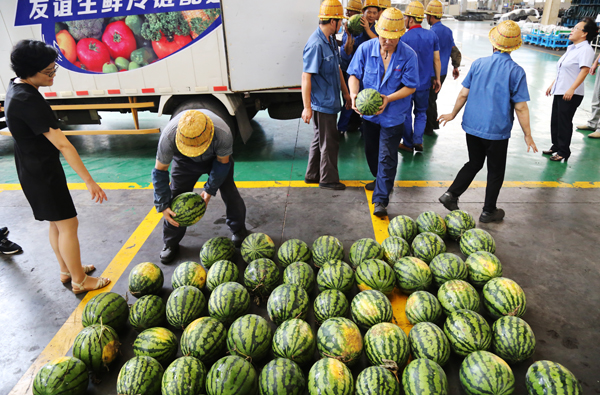 進(jìn)入三伏天以來,天氣日益炎熱。7月17日至18日,我集團(tuán)工會主席、總裁助理鄭培波,集團(tuán)工會委員、企管部部長李其美等一行冒著酷暑來到集團(tuán)各單位生產(chǎn)一線,開展了“夏送清涼”活動,傳達(dá)了集團(tuán)領(lǐng)導(dǎo)對一線干部職工的關(guān)懷和慰問。 活動中,慰問組先后來到興業(yè)房產(chǎn)公司、興業(yè)汽配公司、北方創(chuàng)信防水公司、天地人綠化公司、金帝物業(yè)公司、匯川建材公司、天泰建筑公司等單位,看望慰問了在烈日下依然堅守崗位、奮力工作的一線興業(yè)員工。炎炎夏日,各公司管理人員和一線工人們?nèi)匀粓允貚徫唬^頂烈日忙碌著,他們不辭辛苦,為企業(yè)發(fā)展、城市建設(shè)做出了巨大的貢獻(xiàn)。 每到一處,鄭培波一行把西瓜、綠豆、綠茶等降溫防暑食品一一分發(fā)到一線職工手中,在送去夏季消暑慰問品的同時,也對在酷暑季節(jié)仍然奮戰(zhàn)在一線的職工表達(dá)了最崇高的敬意和最誠摯的感謝。鄭培波要求各單位一定要做好一線工作人員的安全和防暑降溫工作,盡量減少高溫時段戶外工作,為廣大一線工人營造良好的工作及生活環(huán)境,讓工人們切實體會到工會大家庭的溫暖與關(guān)懷,把防暑降溫工作深入到每個崗位,確保廣大職工安然度夏。 據(jù)了解,我集團(tuán)“夏送清涼”活動已經(jīng)連續(xù)舉辦了十多年,是集團(tuán)工會的一項常規(guī)工作,也是集團(tuán)工會深入基層、深入職工、深入群眾,面對面、心貼心、實打?qū)嵉貫槁毠し⻊?wù)的一項民心工程。本次“夏送清涼”活動,集團(tuán)及各基層工會共發(fā)放西瓜3700個、綠豆4200斤、有機(jī)綠茶1450斤,受到廣大一線員工的一致好評。 “夏送清涼”慰問活動,不僅為一線員工送去防暑、降溫食品,更重要是傳達(dá)了集團(tuán)領(lǐng)導(dǎo)對一線員工的關(guān)切之情,展示了興業(yè)集團(tuán)“有情關(guān)懷,無情管理”的人性化管理理念。(文/田文星)