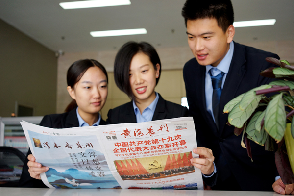 中國共產(chǎn)黨第十九次全國代表大會(huì)于10月18日上午在北京隆重開幕。連日來,我集團(tuán)廣大干部職工迅速自發(fā)掀起學(xué)習(xí)貫徹十九大精神的高潮。有的通過網(wǎng)絡(luò)直播收看黨的十九大開幕盛況,有的通過報(bào)刊、微信等途徑認(rèn)真學(xué)習(xí)習(xí)近平同志代表第十八屆中央委員會(huì)向大會(huì)所作的報(bào)告和相關(guān)會(huì)議精神。 廣大職工紛紛表示,十九大的勝利召開,為民營企業(yè)的發(fā)展描繪了更加燦爛的前程,將不忘初心,牢記“興家、興業(yè)、報(bào)國”的企業(yè)使命,立足工作崗位,從思想武裝入手,以實(shí)際行動(dòng)貫徹黨的十九大精神;努力學(xué)習(xí)創(chuàng)新,全面提升產(chǎn)品質(zhì)量和服務(wù)水平,為實(shí)現(xiàn)中華民族偉大復(fù)興、中國夢不懈奮斗。(文圖/黃夢鴿)