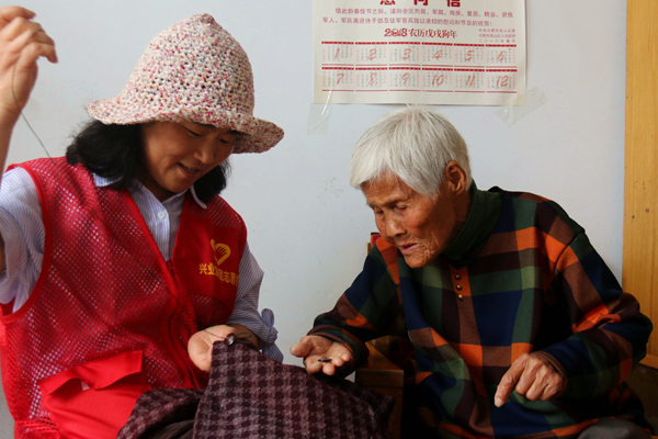 溫馨整潔的小小房間內(nèi),興業(yè)集團(tuán)女職工高玉穿針引線,幫一位聾啞老人縫好衣服上的紐扣,隨后,又耐心地幫老人把衣服穿好。老人的眼睛里閃爍著淚花,她緊緊抓住高玉的手,著急地比劃著,感激之情溢于言表。 這是6月16日上午,發(fā)生在嵐山區(qū)高興鎮(zhèn)敬老院里的溫馨一幕,這一天正值傳統(tǒng)節(jié)日端午節(jié)前夕,興業(yè)集團(tuán)團(tuán)委組織興業(yè)學(xué)雷鋒志愿者服務(wù)大隊(duì)的20余名“紅馬甲”來到該敬老院,與30余名老人們共同度過了一個(gè)和樂溫馨的端午佳節(jié)。經(jīng)過近1小時(shí)的驅(qū)車,上午9點(diǎn),志愿者們及家人在敬老院大院集結(jié)完成,穿上閃動(dòng)的志愿者紅馬甲,把帶來的禮品粽子、大米、水果、面粉、雞蛋等禮物送給敬老院。 志愿者們的到來,讓這個(gè)沉寂安靜的小院熱鬧了起來。一些老人走出宿舍,和志愿者們熱情地打招呼、聊天。志愿者們還分組進(jìn)入各位老人的宿舍,幫行動(dòng)不便的老人打掃衛(wèi)生。 上午10點(diǎn),經(jīng)過一番準(zhǔn)備,包粽子開始了。志愿者及家人們都是包粽子高手,只見一片片寬厚的粽葉在手中翻轉(zhuǎn),包上糯米,裹上蜜棗,再雙雙對(duì)疊、捆扎結(jié)實(shí),一只只漂亮精致的粽子便完成了。人多力量大,兩大盆糯米很快被“消滅”,老人們當(dāng)天要吃的粽子20分鐘內(nèi)全部完成! 隨后,簡單的“文藝表演”在敬老院大院空地舉行。興業(yè)職工志愿者和家人們,尤其小朋友們逐一上臺(tái),樸實(shí)、可愛的樣子逗樂了現(xiàn)場每一個(gè)人。 隨著節(jié)目的結(jié)束,志愿者們也逐一踏上返程。盡管只有短暫一上午的陪伴,盡管表演不華麗、不專業(yè),盡管粽子大大小小,但過程中的所有笑容都珍藏在每個(gè)人心里。愿老人們品嘗著“蜜棗”粽子,心里也感受到這份甜蜜的關(guān)懷。 據(jù)悉,本次以“粽子飄香、關(guān)愛情長”為主題的志愿行動(dòng),是興業(yè)集團(tuán)第二次來到嵐山區(qū)高興鎮(zhèn)敬老院組織開展志愿服務(wù)活動(dòng)。6月12日,興業(yè)集團(tuán)團(tuán)委面向全集團(tuán)發(fā)出端午節(jié)走進(jìn)敬老院志愿服務(wù)的倡議,得到了大家的熱烈響應(yīng)!拔野职謰寢屇昙o(jì)也大了,看到這些老人,跟看到自己的父母一樣,很親切,能為他們做點(diǎn)力所能及的事情,我感到很高興……”志愿者高玉說出了她的心聲。(文/ 王瑜 張守艷)