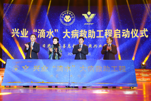 1月22日,興業(yè)“滴水”大病救助工程基金捐贈(zèng)儀式在日照市社會(huì)組織創(chuàng)業(yè)園內(nèi)舉行。市政府副市長(zhǎng)、市公安局局長(zhǎng)張培林,市民政局局長(zhǎng)王錄聯(lián),市政府副秘書(shū)長(zhǎng)王義軍,我集團(tuán)董事長(zhǎng)丁杰、常務(wù)副總裁王玉劍、副總裁李俐萱出席活動(dòng)。市慈善總會(huì)的相關(guān)工作人員和我市義工代表及興業(yè)志愿者等百余人參加捐贈(zèng)儀式。 王錄聯(lián)主持捐贈(zèng)儀式,他說(shuō)興業(yè)集團(tuán)高度認(rèn)可市慈善總會(huì)的“滴水”大病救助工程,積極主動(dòng)捐贈(zèng)50萬(wàn)元設(shè)立專(zhuān)項(xiàng)基金,為日照市慈善事業(yè)做出了巨大貢獻(xiàn)。李俐萱代表興業(yè)集團(tuán)向市慈善總會(huì)捐贈(zèng)了50萬(wàn)元興業(yè)“滴水”大病救助工程基金,市慈善總會(huì)向興業(yè)集團(tuán)頒發(fā)捐贈(zèng)證書(shū)和愛(ài)心企業(yè)銅牌!霸肝覀兠總(gè)人都能成為一束光,照亮更多的人!”李俐萱接過(guò)捐贈(zèng)證書(shū)和和愛(ài)心企業(yè)銅牌后激動(dòng)地說(shuō)。 王玉劍在致辭中表示,近年來(lái),興業(yè)集團(tuán)在丁杰董事長(zhǎng)的領(lǐng)導(dǎo)和倡導(dǎo)下、在李俐萱女士的直接推動(dòng)下,先后捐款4000多萬(wàn)元助力全市公益慈善、扶貧攻堅(jiān)、文明城市創(chuàng)建、新農(nóng)村建設(shè)、希望工程、文化體育事業(yè)等,做了一些實(shí)實(shí)在在的工作,也兌現(xiàn)了一家本土民營(yíng)企業(yè)的莊嚴(yán)承諾。同時(shí)他強(qiáng)調(diào),下一步,興業(yè)集團(tuán)將會(huì)在持續(xù)關(guān)注興業(yè)“滴水”大病救助工程新動(dòng)態(tài)的基礎(chǔ)上,用更直接、更有效的行動(dòng)擦亮更多的慈善品牌,為全市社會(huì)事業(yè)發(fā)展貢獻(xiàn)力量! 出席領(lǐng)導(dǎo)還一同參觀了興業(yè)集團(tuán)捐建的“興業(yè)慈善超市”,對(duì)慈善超市建設(shè)運(yùn)營(yíng)情況給予充分肯定。 又訊 (文/ 張守艷)1月23日,興業(yè)集團(tuán)2019年春節(jié)晚會(huì)現(xiàn)場(chǎng),興業(yè)“滴水”大病救助工程溫暖啟動(dòng)。 興業(yè)“滴水”大病救助工程由市民政局、市慈善總會(huì)聯(lián)合開(kāi)展,主要面向我市患有各類(lèi)癌癥等重大疾病、個(gè)人負(fù)擔(dān)重、家庭困難的群眾。該工程于2019年春節(jié)前集中開(kāi)展救助活動(dòng),救助標(biāo)準(zhǔn)為5000元/人,符合條件的救助對(duì)象可根據(jù)戶(hù) 口所屬轄區(qū)向所在區(qū)縣民政、慈善部門(mén)提出申請(qǐng),并按要求填寫(xiě)救助材料,由區(qū)縣民政、慈善部門(mén)審核通過(guò)后,予以救助。該工程由興業(yè)集團(tuán)、市慈善總會(huì)、各區(qū)縣三方共統(tǒng)籌善款222.5萬(wàn)元設(shè)立專(zhuān)項(xiàng)基金,可幫助全市至少450個(gè)大病致困家庭度過(guò)難關(guān)。 “滴水”大病救助工程開(kāi)展多年來(lái),已成為廣大人民群眾普遍關(guān)注的社會(huì)熱點(diǎn)活動(dòng)之一,尤其已成為廣大重病患者對(duì)政府、對(duì)社會(huì)和慈善部門(mén)的熱切期盼。今年活動(dòng)組織方式轉(zhuǎn)變,由興業(yè)集團(tuán)捐贈(zèng)50萬(wàn)元善款,設(shè)立專(zhuān)項(xiàng)基金,為這一救助工程注入了生機(jī)和活力。(文/ 田文星)