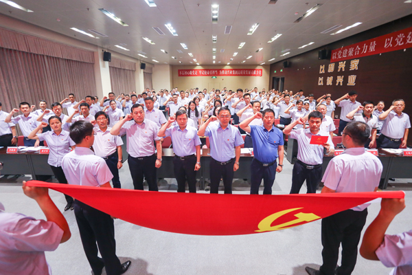 “我志愿加入中國共產(chǎn)黨,擁護黨的綱領(lǐng),遵守黨的章程,履行黨員義務(wù),執(zhí)行黨的決定,嚴守黨的紀律,保守黨的秘密,對黨忠誠,積極工作,為共產(chǎn)主義奮斗終身,隨時準備為黨和人民犧牲一切,永不叛黨!”會上,全體與會黨員面對鮮紅的黨旗,高舉右拳,字字鏗鏘,重溫入黨誓詞,彰顯了興業(yè)集團全體黨員干部不忘初心、牢記使命的堅定政治信念。