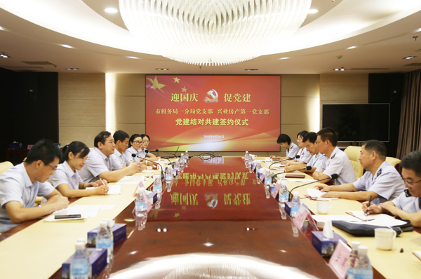 9月26日上午,日照市稅務(wù)局第一稅務(wù)分局黨支部與興業(yè)房產(chǎn)公司第一黨支部在興業(yè)大廈25樓會議室舉行了稅企黨建“結(jié)對共建”儀式,共同提升黨建工作水平。市稅務(wù)局第一稅務(wù)分局黨支部書記、局長楊春國,黨支部委員、副局長秦玉寶,黨支部委員、紀檢員王均順等相關(guān)領(lǐng)導(dǎo)出席活動,集團黨委紀委書記、常務(wù)副總裁王玉劍,興業(yè)房產(chǎn)第一支部書記、副總經(jīng)理李風(fēng)霞等雙方近50余名黨員干部參加活動,集團黨委副書記、工會主席鄭培波主持會議。 楊春國一行首先實地參觀了興業(yè)房產(chǎn)黨群活動室、興業(yè)集團黨建文化走廊等,對興業(yè)集團及興業(yè)房產(chǎn)的黨建工作進行了充分肯定。儀式上,楊春國和李風(fēng)霞共同簽訂《黨建結(jié)對共建協(xié)議書》,第一稅務(wù)分局還向興業(yè)房產(chǎn)贈送《民營大企業(yè)稅收服務(wù)手冊》。簽約儀式結(jié)束后,楊春國和李風(fēng)霞分別介紹了第一稅務(wù)分局黨支部和興業(yè)房產(chǎn)第一黨支部黨建工作情況。 王玉劍代表興業(yè)集團黨委對本次稅企黨建“結(jié)對共建”活動給予祝賀,他高度贊揚了這種“面對面、點對點”的黨建活動形式,并對雙方下一步工作提出要求。 為慶祝新中國成立70周年,大力唱響禮贊新中國、奮進新時代的青春主旋律,雙方人員一起來到興業(yè)集團投資建設(shè)的日照萬達廣場項目現(xiàn)場,組織開展“我與國旗合個影”活動。雙方人員聚集在一起,分別與國旗進行不同形式的合影,高喊“我愛祖國、我愛日照”,向祖國深情告白,表達了對祖國母親的赤誠熱愛之情,表達了對新中國70華誕的美好祝福和真誠祈愿。(文/ 馮鵬 姚成良 攝/王然)