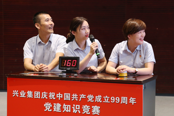為紀(jì)念中國(guó)共產(chǎn)黨成立99周年,深入貫徹落實(shí)習(xí)近平新時(shí)代中國(guó)特色社會(huì)主義思想,強(qiáng)化黨章黨規(guī)黨紀(jì)教育,提高廣大黨員干部和黨務(wù)工作人員黨建知識(shí)水平及黨務(wù)工作能力,進(jìn)一步強(qiáng)化理論武裝、堅(jiān)定理想信念,發(fā)揮黨支部的戰(zhàn)斗堡壘作用和黨員的先鋒模范作用,為集團(tuán)各項(xiàng)事業(yè)高質(zhì)量發(fā)展再立新功,6月24日,“守初心、擔(dān)使命”興業(yè)集團(tuán)慶祝中國(guó)共產(chǎn)黨成立99周年黨建知識(shí)競(jìng)賽在興業(yè)大廈2樓會(huì)議室成功舉行。 興業(yè)集團(tuán)黨委書記、總裁趙文強(qiáng),常務(wù)副總裁王玉劍,副總裁丁兆良,市派黨建工作指導(dǎo)員王新聞,集團(tuán)黨委副書記、工會(huì)主席鄭培波,總裁助理王嘉,總裁助理江麗麗出席活動(dòng)。 來(lái)自集團(tuán)黨委所屬各支部推薦的11支代表隊(duì)參加了競(jìng)賽。每一支參賽代表隊(duì)由3名成員組成,包括一名黨務(wù)工作者(“燈塔—黨建在線”管理員)、一名黨員、一名2020年度黨員擬發(fā)展對(duì)象。競(jìng)賽內(nèi)容主要包括習(xí)近平新時(shí)代中國(guó)特色社會(huì)主義思想、《中國(guó)共產(chǎn)黨章程》《中國(guó)共產(chǎn)黨支部工作條例(試行)》《中國(guó)共產(chǎn)黨黨員教育管理工作條例》《中國(guó)共產(chǎn)黨紀(jì)律處分條例》“燈塔—黨建在線”黨員管理平臺(tái)相關(guān)知識(shí)等。 競(jìng)賽設(shè)置個(gè)人必答題、集體必答題、搶答題、風(fēng)險(xiǎn)題四種題型。比賽中,選手們精神飽滿、機(jī)智敏銳,充分展示自我、冷靜應(yīng)答,場(chǎng)下觀眾情緒高漲,互動(dòng)熱情,掌聲此起彼伏,活動(dòng)現(xiàn)場(chǎng)氣氛熱烈、生動(dòng)有趣。經(jīng)過(guò)激烈角逐,最終興業(yè)房產(chǎn)黨總支、集團(tuán)機(jī)關(guān)黨支部和匯川建材黨支部獲得前三名。 王玉劍作總結(jié)講話,他指出,在慶祝中國(guó)共產(chǎn)黨成立99周年之際舉辦本次比賽意義非凡,各黨支部在有限的時(shí)間內(nèi)精心組織,參賽選手表現(xiàn)得非常精彩。他要求,所有黨員要繼續(xù)加強(qiáng)黨建知識(shí)學(xué)習(xí),不忘初心,擔(dān)當(dāng)使命,嚴(yán)格要求,做一名合格黨員,以優(yōu)異的成績(jī)向建黨99周年獻(xiàn)禮。 集團(tuán)黨員干部職工紛紛表示,在迎“七一”之際,以知識(shí)競(jìng)賽的方式促學(xué)、助學(xué)、檢驗(yàn)學(xué)習(xí)成果,形式新穎、生動(dòng)有趣,極大增強(qiáng)了黨建理論學(xué)習(xí)的吸引力和趣味性,充分調(diào)動(dòng)了大家工作學(xué)習(xí)的積極性和主動(dòng)性。下一步,大家將繼續(xù)立足本職崗位,努力學(xué)習(xí)各類黨建知識(shí),以學(xué)在前列、用在前列、走在前列的精氣神,展現(xiàn)黨員風(fēng)采,發(fā)揮先鋒作用,為推動(dòng)企業(yè)高質(zhì)量發(fā)展貢獻(xiàn)力量。(文/ 張斌)
