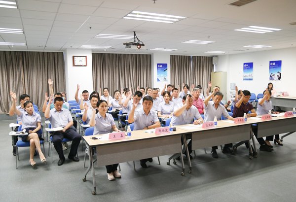 7月23日,在莊嚴的國歌聲中,興業(yè)集團黨委換屆選舉大會在興業(yè)大廈2樓會議室隆重舉行。興業(yè)集團總裁趙文強,常務(wù)副總裁王玉劍,副總裁丁兆良,市委組織部選派黨建工作指導(dǎo)員王新聞,總裁助理、工會副主席王嘉參加會議并在主席臺就座?偛弥、工會主席鄭培波主持會議。來自集團黨委各委員,直屬黨總支、黨支部書記以及來自興業(yè)集團各公司、各行業(yè)、各條戰(zhàn)線的144名黨員代表參加了會議。 會上,丁兆良宣讀了市非公有經(jīng)濟組織綜合黨委《關(guān)于日照興業(yè)集團黨委換屆選舉的批復(fù)》。趙文強代表集團黨委作了題為《黨建引擎 興業(yè)報國 為推動集團高質(zhì)量發(fā)展增添紅色動力》的工作報告。報告指出,三年來,集團黨委認真貫徹黨的十九大以及習(xí)近平總書記系列重要講話精神,緊緊圍繞上級黨組織工作要求,全面推行“1361”黨建工作法,通過組織引領(lǐng)、人才引領(lǐng)、文化引領(lǐng)等作用,用紅色基因為集團各項事業(yè)高質(zhì)量發(fā)展增添了紅色動力。 大會表決通過了《中國共產(chǎn)黨日照興業(yè)集團有限公司換屆選舉大會選舉辦法(草案)》。在監(jiān)票人的監(jiān)督下,到會的144名黨員代表以無記名投票方式進行了選舉。趙文強、王玉劍、丁兆良、鄭培波、王嘉5名同志當(dāng)選為中共日照興業(yè)集團有限公司第四屆委員會委員,王玉劍、江麗麗、胡陽3名同志當(dāng)選為中共日照興業(yè)集團有限公司第一屆紀律檢查委員會委員。 第四屆黨委委員舉行了第一次全體委員會議,推選趙文強同志為集團黨委書記,鄭培波同志為黨委副書記,并確定了各委員分工;經(jīng)第一屆紀委第一次全體委員會議推選,第四屆黨委委員第一次全體會議審議通過,王玉劍同志當(dāng)選為紀委書記。 新當(dāng)選的紀委書記王玉劍發(fā)表講話,他表示,新一屆紀律檢查委員會要真正負起責(zé)任,完善各項規(guī)章制度,開展系列教育活動,讓全體黨員干部的作風(fēng)紀律意識入腦、入心、見行動。他指出,黨員干部要敬畏組織,忠心為黨;要敬畏法紀,遵守規(guī)矩;要敬畏權(quán)力,行有所止;要敬畏崗位,履職擔(dān)當(dāng),明白做人,清白做事,合眾人之力營造集團風(fēng)清氣正的干事創(chuàng)業(yè)新局面。 新當(dāng)選的集團黨委書記趙文強發(fā)表重要講話。他強調(diào),在新形勢下,集團第四屆黨委要堅持“打鐵還需自身硬”,深入學(xué)習(xí)習(xí)近平新時代中國特色社會主義思想和黨的十九大精神,要全面落實管黨治黨政治責(zé)任,持之以恒正風(fēng)肅紀,強化工作落實,以身作則,主動作為,用實際行動回應(yīng)全體黨員的期望,為集團各項事業(yè)高質(zhì)量發(fā)展再添新動力!最后全體黨員干部共同觀看了警示教育片《國家監(jiān)察》第一集《擘畫藍圖》,要求各黨總支、支部組織全體黨員干部共同觀看《國家監(jiān)察》全部五集,并通過多種途徑開展形式多樣的警示教育活動,進一步提高黨性修養(yǎng),筑牢思想根基。據(jù)悉,7月9日至17日,興業(yè)集團黨委下屬的3個黨總支、17個黨支部換屆工作全部完成,組織結(jié)構(gòu)更為合理,開啟了集團黨建工作的新篇章。新一屆黨總支(支部)委員紛紛表態(tài),將積極響應(yīng)集團黨委工作部署,認真對照《黨章》要求,履職盡責(zé),提高黨性修養(yǎng),做好示范表率,同時不斷加強和完善基層黨組織標(biāo)準(zhǔn)化、規(guī)范化建設(shè),發(fā)揮好基層黨組織的戰(zhàn)斗堡壘作用,推動黨建工作和生產(chǎn)經(jīng)營更好結(jié)合,為興業(yè)集團高質(zhì)量發(fā)展貢獻力量。(文/ 田文星 攝/田文星 房飛 劉鎧)