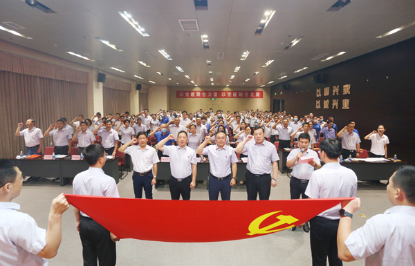 “起來(lái)!不愿做奴隸的人們!把我們的血肉筑成我們新的長(zhǎng)城……”6月30日下午3點(diǎn),在莊嚴(yán)的國(guó)歌聲中,興業(yè)集團(tuán)慶祝建黨99周年總結(jié)表彰大會(huì)在興業(yè)大廈二樓會(huì)議室正式拉開(kāi)帷幕。集團(tuán)黨委書(shū)記、總裁趙文強(qiáng),集團(tuán)黨委紀(jì)委書(shū)記、常務(wù)副總裁王玉劍,集團(tuán)黨委組宣委員、副總裁丁兆良,市委組織部選派黨建工作指導(dǎo)員王新聞參加會(huì)議并在主席臺(tái)就座。集團(tuán)黨委副書(shū)記、工會(huì)主席鄭培波主持會(huì)議。來(lái)自集團(tuán)黨委各委員,直屬黨總支、黨支部書(shū)記以及來(lái)自興業(yè)集團(tuán)各公司、各行業(yè)、各條戰(zhàn)線的171名黨員代表參加了會(huì)議。 為鼓舞士氣,表彰先進(jìn),弘揚(yáng)正氣,充分發(fā)揮榜樣力量和示范作用,激勵(lì)各級(jí)黨組織、黨員和黨務(wù)工作者奮發(fā)有為、再創(chuàng)佳績(jī),會(huì)議首先對(duì)獲得2019年度“先進(jìn)基層黨組織”“優(yōu)秀共產(chǎn)黨員”“優(yōu)秀黨務(wù)工作者”的3個(gè)基層黨組織和49名個(gè)人進(jìn)行了表彰。丁兆良代表集團(tuán)黨委宣讀了表彰決定。 會(huì)上,趙文強(qiáng)代表興業(yè)集團(tuán)黨委為王新聞?lì)C發(fā)“黨建指導(dǎo)員紀(jì)念”榮譽(yù)獎(jiǎng)杯。2018年8月,王新聞同志根據(jù)市委組織部安排到興業(yè)集團(tuán)擔(dān)任黨建指導(dǎo)員。近兩年的時(shí)間里,始終把自己當(dāng)成興業(yè)的一員,把興業(yè)的事當(dāng)成本職工作來(lái)做,認(rèn)認(rèn)真真、兢兢業(yè)業(yè),積極發(fā)揮黨的政策“宣傳員”、黨建工作“組織員”和企業(yè)高質(zhì)量發(fā)展“服務(wù)員”作用,為集團(tuán)黨建工作和各項(xiàng)事業(yè)高質(zhì)量發(fā)展做出了突出貢獻(xiàn)。按照工作安排,8月份,王新聞將完成在興業(yè)集團(tuán)黨建指導(dǎo)工作,回到本職崗位。 天泰建筑公司黨總支組織委員李宗光、興業(yè)房產(chǎn)公司成本中心造價(jià)員王飛、金帝物業(yè)公司黨支部組宣委員蔡莎莎分別代表先進(jìn)集體和先進(jìn)個(gè)人作了典型發(fā)言,彰顯了共產(chǎn)黨員的優(yōu)秀品格,展示了新時(shí)期集團(tuán)各級(jí)黨組織和廣大黨員的良好精神風(fēng)貌,也為各級(jí)黨組織、共產(chǎn)黨員和黨務(wù)工作者做好黨務(wù)工作指明了前進(jìn)的方向。 王玉劍代表集團(tuán)黨委分別同集團(tuán)機(jī)關(guān)、興業(yè)房產(chǎn)、天泰建筑、金帝物業(yè)、興業(yè)汽配、北方創(chuàng)信、天地人綠化、匯川建材、友誼商店等各黨總支、黨支部書(shū)記,簽訂了《2020年黨風(fēng)廉政建設(shè)目標(biāo)責(zé)任狀》。簽訂目標(biāo)責(zé)任狀,旨在要求各黨總支、黨支部書(shū)記按照黨風(fēng)廉政建設(shè)責(zé)任要求,認(rèn)真履行好第一責(zé)任人責(zé)任,帶頭落實(shí)各級(jí)黨風(fēng)廉政建設(shè)各項(xiàng)規(guī)定,及時(shí)發(fā)現(xiàn)并制止各種不良傾向,打造風(fēng)清氣正的干事氛圍。 趙文強(qiáng)發(fā)表重要講話,他深情緬懷了黨的光輝歷史,充分肯定了2019年以來(lái)集團(tuán)各級(jí)黨組織和廣大黨員干部在推動(dòng)集團(tuán)黨建工作和企業(yè)發(fā)展過(guò)程中做出的積極貢獻(xiàn),并對(duì)下一步黨建工作進(jìn)行了具體安排部署。趙文強(qiáng)說(shuō),2020年是十三五規(guī)劃的收官之年,也是興業(yè)集團(tuán)三年攻堅(jiān)戰(zhàn)的關(guān)鍵一年。面對(duì)疫情防控和企業(yè)發(fā)展雙重考驗(yàn),集團(tuán)各級(jí)黨組織和廣大黨員要以時(shí)不我待的緊迫感、義不容辭的責(zé)任感和搶抓機(jī)遇的使命感,始終保持奮發(fā)有為的狀態(tài)、勤懇務(wù)實(shí)的作風(fēng)、創(chuàng)先爭(zhēng)優(yōu)的干勁,奮力開(kāi)創(chuàng)各項(xiàng)事業(yè)高質(zhì)量發(fā)展和黨的建設(shè)工作新局面。 “我志愿加入中國(guó)共產(chǎn)黨,擁護(hù)黨的綱領(lǐng),遵守黨的章程,履行黨員義務(wù),執(zhí)行黨的決定,嚴(yán)守黨的紀(jì)律,保守黨的秘密,對(duì)黨忠誠(chéng),積極工作,為共產(chǎn)主義奮斗終身,隨時(shí)準(zhǔn)備為黨和人民犧牲一切,永不叛黨!”會(huì)議最后,全體與會(huì)黨員高舉右拳,面向黨旗,重溫入黨誓詞,聲音洪亮、字字鏗鏘,充分彰顯了興業(yè)集團(tuán)全體黨員干部的責(zé)任擔(dān)當(dāng)以及永遠(yuǎn)跟黨走的信心和決心! 本次大會(huì)歷時(shí)一個(gè)半小時(shí),在雄壯的《國(guó)際歌》聲中勝利閉幕!接下來(lái),各級(jí)黨組織和黨員干部將迅速行動(dòng)起來(lái),結(jié)合各單位工作實(shí)際,第一時(shí)間召開(kāi)黨員大會(huì),深入學(xué)習(xí)和深刻把握此次會(huì)議的精神實(shí)質(zhì),將會(huì)議精神傳達(dá)給每一名黨員,努力營(yíng)造濃厚的干事創(chuàng)業(yè)氛圍。同時(shí),深入推進(jìn)“不忘初心、牢記使命”主題教育活動(dòng),堅(jiān)定信心,振奮精神,砥礪前行,以?shī)^發(fā)向上的精神降低疫情的影響,以頑強(qiáng)拼搏的狀態(tài)搶回因疫情耽擱的時(shí)間,奮力奪取疫情防控和企業(yè)發(fā)展雙勝利,以優(yōu)異的成績(jī)向建黨99周年獻(xiàn)禮!(文/馮鵬 攝/王然 馮鵬)