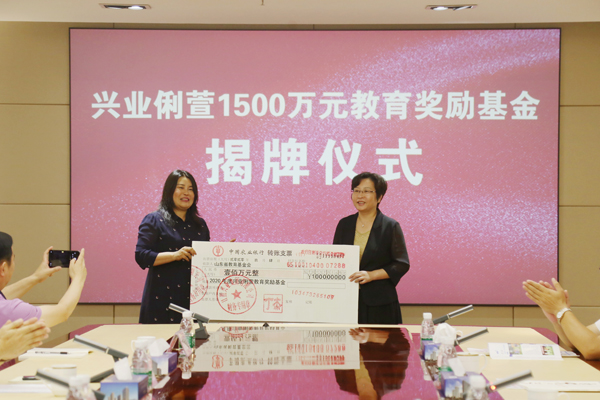 9月4日上午,興業(yè)俐萱教育獎勵基金揭牌儀式在興業(yè)集團25樓會議室舉行。市政府副市長高月波出席活動并講話,市政府辦公室二級調研員鄭衛(wèi)東主持會議,市教育局黨組書記、局長申淑清,市教育局黨組成員、副局長牟敦峰,東港區(qū)政府副區(qū)長厲彥寶,東港區(qū)教體局局長宋百合,興業(yè)集團董事長丁杰,黨委書記、總裁趙文強,副總裁李俐萱、戴方 波,黨委副書記、工會主席鄭培波等參加活動。 儀式上,趙文強首先匯報了興業(yè)集團近年來的捐資助學情況。他表示,多年來,興業(yè)集團堅持將自身發(fā)展與日照城市發(fā)展深度融合,為推動日照經(jīng)濟及社會事業(yè)高質量發(fā)展貢獻了興業(yè)力量,本次捐資1500萬元設立俐萱教育獎勵基金,旨在激勵廣大教育工作者不忘初心,更加積極投身教育事業(yè),為共同譜寫日照教育事業(yè)發(fā)展新篇章貢獻力量。 高月波在講話中對興業(yè)集團給予高度贊揚,并對教育系統(tǒng)下一階段工作提出更高要求。他指出,作為日照本土的“中國民營企業(yè)500強”“山東省民營企業(yè)100強”企業(yè),興業(yè)集團積極投身社會公益慈善事業(yè),先后捐款6000多萬元用于扶危濟困、希望工程、抗震救災、扶貧攻堅、捐資助學等,這次又專門拿出1500萬元,設立興業(yè)俐萱教育獎勵基金,用實際行動支持教育事業(yè)發(fā)展,充分彰顯了強烈的社會責任感和無私奉獻精神,值得全社會的肯定和褒揚。丁杰表示,下一步,興業(yè)集團將積極開展各類捐資助學活動,切實將“興業(yè)俐萱教育獎勵基金”辦成興業(yè)集團又一個重要公益品牌。同時,他希望通過這一平臺,讓更多的社會人士了解支持并參與到全市教育事業(yè)的發(fā)展中,努力在全社會營造尊師重教的濃厚氛圍。 隨后,高月波副市長與丁杰董事長共同為“興業(yè)俐萱教育獎勵基金”揭牌;申淑清局長接受興業(yè)俐萱教育獎勵基金理事長、集團副總裁李俐萱首期100萬元獎勵資金的捐贈。 據(jù)悉,興業(yè)俐萱教育獎勵基金是在山東省教育基金會和日照市教育局指導下,由日照興業(yè)集團董事長丁杰及其夫人李俐萱發(fā)起設立的,是興業(yè)集團近年來繼“興業(yè)愛心慈善基金”“興業(yè)助學金”“興業(yè)‘滴水’大病救助基金”“興業(yè)見義勇為基金”“俐萱互助基金”“彩虹度公益基金”之后設立的第七個公益基金。興業(yè)俐萱教育獎勵基金總額1500萬元,基金母本放在企業(yè)運營,興業(yè)集團每年按不低于100萬元的運營收益,專項用于獎勵日照市優(yōu)秀教師和優(yōu)秀教育工作者,助推日照教育事業(yè)實現(xiàn)更高質量的發(fā)展。(文/ 田文星 攝/張斌)