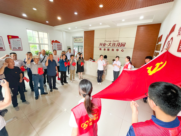 為慶祝中國共產(chǎn)黨成立100周年,將黨史學(xué)習(xí)教育推向深入,我集團(tuán)各公司組織開展了多項系列活動,謳歌黨的百年歷程,頌揚黨的豐功偉績,營造出了濃厚的節(jié)日氛圍。 鏡頭一:集體收看慶祝大會 7月1日,慶祝中國共產(chǎn)黨成立100周年大會在北京天安門廣場隆重舉行。我集團(tuán)各公司組織黨員職工一同觀看大會直播,聆聽習(xí)近平總書記的重要講話,以這種有意義的方式慶祝黨的生日。 一大早,黨員干部職工們早早守在電視或電腦旁,聚精會神地收看慶祝大會直播?倳浀闹v話鏗鏘有力,振奮人心,現(xiàn)場黨員熱血沸騰,民族自豪感油然而生,各會場不時爆發(fā)出熱烈的掌聲。直播結(jié)束后,大家紛紛表示,要銘記歷史,傳承好紅色基因,珍惜現(xiàn)在的和平環(huán)境,在黨中央的正確領(lǐng)導(dǎo)下,不忘初心,牢記使命,為中華民族偉大復(fù)興作出應(yīng)有的貢獻(xiàn)。 鏡頭二:與黨旗深情合影 當(dāng)天,我集團(tuán)各級黨組織還組織廣大黨員開展“我與黨旗合個影”活動,以這種的形式表達(dá)作為一名共產(chǎn)黨員的光榮,向黨深情告白。 黨旗下,每位黨員佩戴黨徽,精神飽滿,榮譽感和自豪感溢于言表。大家重溫入黨時曾許下的莊嚴(yán)誓詞,時刻提醒自己堅定理想信念,發(fā)揮模范帶頭作用,凝心聚力、銳意進(jìn)取,為企業(yè)發(fā)展貢獻(xiàn)力量。一幅幅創(chuàng)意滿滿的作品,一張張燦爛綻放的笑臉,充分展現(xiàn)了興業(yè)人忠誠于黨、不忘初心的堅定信念,表達(dá)了對黨的無限熱愛和深深祝福。 鏡頭三:“紅心管家”薪火相傳 “我已經(jīng)有62年的黨齡了!”在老黨員業(yè)主呂文章的家里,金帝物業(yè)“紅色管家”們正專心致志地傾聽老黨員講述過去的故事。在中國共產(chǎn)黨百年誕辰到來之際,金帝物業(yè)“紅色管家”來到黨員業(yè)主家中,為他們送上節(jié)日的祝福和慰問禮品,聽他們講述曾經(jīng)奮斗的紅色故事。 與此同時,免費義診、維修小家電、檢查水電等小活動正溫暖上演,為業(yè)主們排憂解難;開展黨史知識答題活動、一同觀看紅色電影,帶領(lǐng)業(yè)主學(xué)黨史、感黨恩。金帝物業(yè)“紅色管家”們,以實際行動踐行中國共產(chǎn)黨“為人民服務(wù)”的根本宗旨,讓紅色血脈、革命薪火代代相傳。 鏡頭四:傾情獻(xiàn)唱 影像流轉(zhuǎn) 向黨告白 “唱支山歌給黨聽,我把黨來比母親……”深情婉轉(zhuǎn)的歌聲自我集團(tuán)黨群服務(wù)中心傳出。集團(tuán)機關(guān)黨支部組織黨員傾情獻(xiàn)唱紅色歌曲《唱支山歌給黨聽》,向黨深情告白。興業(yè)人以嘹亮的歌聲致敬偉大時代,抒發(fā)了對黨的無限忠誠。歌聲款款,蘊含著新時代的奮進(jìn)力量。 興業(yè)天泰建工精心攝制短片《他們》,用飽滿豐富的影像鏡頭,記錄一位位奮戰(zhàn)在建筑第一線的共產(chǎn)黨員。他們立足平凡的崗位,擔(dān)當(dāng)作為,突破創(chuàng)新,發(fā)揮了先鋒模范作用,每一名黨員都是一面旗幟。夜幕降臨,興業(yè)國際財富中心燈光璀璨!盁崃覒c祝中國共產(chǎn)黨成立100周年”“堅定不移聽黨話,矢志不渝跟黨走”……一條條巨幅慶祝標(biāo)語在燈光幕墻上滾動播放,照亮了日照城市的海岸,呈現(xiàn)出美輪美奐的視覺效果,顯得蔚為壯觀。興業(yè)國際財富中心以這種新穎的方式,慶祝黨的百年誕辰。 從1921年到2021年,中國共產(chǎn)黨走過了不平凡的百年歷程。憶往昔,風(fēng)雨兼程,歲月如歌;看今朝,百年華誕,風(fēng)華正茂。銘記革命歷史,傳承紅色基因,全體興業(yè)人在活動中汲取砥礪前行的力量,不斷推動黨史學(xué)習(xí)教育往深里走、往心里走、往實里走。(文/ 張守艷 孫元來 姜文)