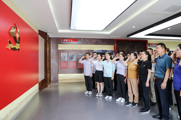 “我志愿加入中國共產(chǎn)黨,擁護(hù)黨的綱領(lǐng),遵守黨的章程,履行黨員義務(wù)……”興業(yè)集團(tuán)黨員高舉右拳,面向黨旗重溫入黨誓詞,鏗鏘的宣誓聲久久回蕩,震撼人心。 6月18日,集團(tuán)機(jī)關(guān)黨支部、貿(mào)易黨支部聯(lián)合舉辦的“守初心、愛祖國、跟黨走”紅色教育主題黨日活動走進(jìn)甲子山 戰(zhàn)役紀(jì)念館、東風(fēng)愛國主義教育基地,30余名黨員代表一起重溫紅色歷史,傳承革命精神。 在甲子山戰(zhàn)役紀(jì)念館,大家先后參觀了“艱辛歲月”“烽火甲子”“紅色甲子”等展區(qū),認(rèn)真聆聽了革命先烈們浴血奮戰(zhàn)的故事。一張張泛黃的照片,一件件珍貴的文物,催人淚下,令人振奮,生動展現(xiàn)了老一輩無產(chǎn)階級革命家不怕犧牲、無私奉獻(xiàn)的精神,讓全體黨員精神上受到洗禮,思想上得到升華。 在東風(fēng)愛國主義教育基地,通過一條條“發(fā)展之路”,一個個“中央一號文件”,全體黨員深入學(xué)習(xí)了我們黨在各個歷史時期關(guān)于“三農(nóng)”問題的立場、觀點(diǎn)和方針,感受了在黨的帶領(lǐng)下,農(nóng)業(yè)農(nóng)村發(fā)展取得的重大變革和成就,感受鄉(xiāng)村振興的嘹亮號角吹遍田野山川的奮進(jìn)力量。 “參加了很多次主題黨日活動,每一次都有更深的觸動,我們要從百年黨史中充分汲取堅定理想信念的智慧和力量!贝舜渭t色之旅,大家紛紛表示感觸頗深,“革命先烈的事跡深深地震撼了我、鼓舞了我,作為一名新時代黨員,我將握好手中的接力棒,立足崗位,踏實工作,做出表率,以實際行動踐行責(zé)任與擔(dān)當(dāng),”青年黨員李慧表達(dá)了堅定的決心。 賡續(xù)百年榮光,勇?lián)鷷r代重任。興業(yè)集團(tuán)各級黨組織將繼續(xù)開展形式多樣、內(nèi)容豐富的主題當(dāng)日活動,激勵廣大黨員干部傳承紅色基因、忠誠履職盡責(zé),不斷推動黨史學(xué)習(xí)教育走深走實,以優(yōu)異成績迎接黨的二十大勝利召開。(文/ 張斌)