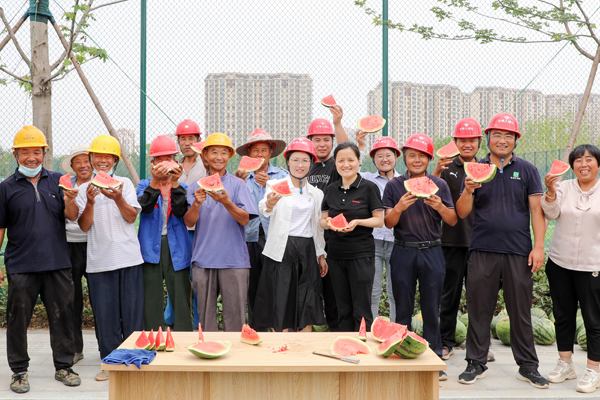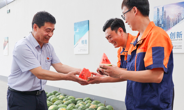 7月2日,我集團(tuán)開展“夏送清涼”慰問(wèn)活動(dòng),集團(tuán)黨委副書記、工會(huì)主席鄭培波,總裁助理、工會(huì)副主席王嘉等兵分兩路,走進(jìn)集團(tuán)各單位生產(chǎn)一線,把關(guān)懷送到員工心坎上,同時(shí)也送上了丁杰董事長(zhǎng)對(duì)廣大奮戰(zhàn)在生產(chǎn)施工一線員工的親切關(guān)懷和慰問(wèn)。 與往年不同的是,此次采購(gòu)的“愛心西瓜”屬于助農(nóng)幫扶產(chǎn)品。前期,我集團(tuán)了解到五蓮縣高澤街道南官莊村瓜農(nóng)西瓜滯銷,經(jīng)實(shí)地考察后,當(dāng)即定下18000斤西瓜,用實(shí)際行動(dòng)幫助瓜農(nóng)度過(guò)難關(guān),助力鄉(xiāng)村振興,并第一時(shí)間送到各單位一線員工手中。 期間,慰問(wèn)小組頂著烈日,冒著高溫,奔赴各單位施工現(xiàn)場(chǎng),先后來(lái)到興業(yè)裝飾、興業(yè)房產(chǎn)、德泰防水、興業(yè)汽配、天泰建工、金帝物業(yè)、天地人綠化、匯川建材等單位車間和項(xiàng)目一線,將“愛心西瓜”送到各單位一線員工手中,在炎炎夏日里,給他們帶去了絲絲涼爽。 “你們辛苦了,要多注意防暑!泵康揭惶,鄭培波、王嘉等都向一線員工致以親切問(wèn)候,代表丁杰董事長(zhǎng)向在高溫下堅(jiān)守崗位的興業(yè)人表示感謝,并詳細(xì)詢問(wèn)了員工們的生產(chǎn)生活情況,囑咐大家要注意自我調(diào)節(jié),夏日高溫戶外作業(yè)時(shí)應(yīng)做好個(gè)人防護(hù),確保人身安全。 “今天的西瓜,吃在心里甜滋滋的!”收到“愛心西瓜”后,員工們對(duì)集團(tuán)領(lǐng)導(dǎo)的關(guān)懷和掛念十分感謝,表示一定會(huì)堅(jiān)守崗位,盡職盡責(zé),以更加旺盛的斗志全身心投入到工作中,保質(zhì)保量、高效地完成各項(xiàng)工作任務(wù)。 據(jù)了解,我集團(tuán)“夏送清涼”活動(dòng)已經(jīng)連續(xù)舉辦了十多年,是集團(tuán)工會(huì)的一項(xiàng)常規(guī)工作,也是集團(tuán)工會(huì)深入基層、深入職工、深入群眾,面對(duì)面、心貼心、實(shí)打?qū)嵉貫槁毠し⻊?wù)的一項(xiàng)民心工程。本次“夏送清涼”活動(dòng),不僅幫助五蓮瓜農(nóng)解決了賣瓜難的燃眉之急,還讓一線員工在炎炎夏日吃上了清涼解暑的西瓜,受到了瓜農(nóng)和一線員工的一致好評(píng)。(文/ 田博文 攝/張斌 田博文)