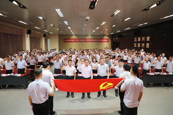 7月1日上午,興業(yè)集團(tuán)慶祝中國共產(chǎn)黨成立101周年總結(jié)表彰大會(huì)在集團(tuán)二樓會(huì)議室召開。興業(yè)集團(tuán)黨委書記、總裁趙文強(qiáng),黨委紀(jì)委書記、常務(wù)副總裁王玉劍,黨委組宣委員、副總裁張峰,黨委副書記、工會(huì)主席鄭培波,黨委群團(tuán)委員、總裁助理王嘉出席會(huì)議并在主席臺(tái)就坐。興業(yè)集團(tuán)各黨總支和支部書記、委員以及來自集團(tuán)各單位、各條戰(zhàn)線的黨員代表共160余人參加會(huì)議。 會(huì)議在雄壯的國歌聲中拉開帷幕。會(huì)議首先對獲得興業(yè)集團(tuán)2021年度“先進(jìn)基層黨組織”“優(yōu)秀共產(chǎn)黨員”“優(yōu)秀黨務(wù)工作者”進(jìn)行了表彰。 王玉劍代表集團(tuán)黨委,分別同集團(tuán)機(jī)關(guān)、興業(yè)貿(mào)易、興業(yè)房產(chǎn)、天泰建筑、金帝物業(yè)、興業(yè)汽配、匯川建材、天地人綠化、德泰防水、萬益友誼、興業(yè)裝飾等黨總支、直屬黨支部書記,簽訂了《2022年黨風(fēng)廉政建設(shè)目標(biāo)責(zé)任狀》。一份責(zé)任狀,簽下的是勇?lián)?dāng)、真作為。會(huì)議要求各支部書記要切實(shí)履行好“第一責(zé)任人”職責(zé),突出“關(guān)鍵少數(shù)”,采取多種措施全面排查黨風(fēng)廉政風(fēng)險(xiǎn)點(diǎn),推動(dòng)全面從嚴(yán)治黨向縱深發(fā)展,為集團(tuán)高質(zhì)量發(fā)展?fàn)I造風(fēng)清氣正的政治生態(tài)。會(huì)上,趙文強(qiáng)作了題為《勇?lián)姑_新局,而立之年再出發(fā),奮力譜寫新時(shí)代興業(yè)集團(tuán)高質(zhì)量發(fā)展新篇章》的講話,充分肯定了集團(tuán)各級黨組織和廣大黨員干部在推動(dòng)集團(tuán)黨建工作和企業(yè)發(fā)展過程中做出的積極貢獻(xiàn)。趙文強(qiáng)表示,過去的一年,集團(tuán)黨委在上級黨委的堅(jiān)強(qiáng)領(lǐng)導(dǎo)下,堅(jiān)持圍繞中心、服務(wù)大局,深入開展黨史學(xué)習(xí)教育,全面加強(qiáng)黨的政治、思想、組織、作風(fēng)和紀(jì)律建設(shè),實(shí)現(xiàn)了黨建工作與企業(yè)發(fā)展同頻共振,為集團(tuán)各項(xiàng)事業(yè)高質(zhì)量發(fā)展注入了強(qiáng)勁的“紅色動(dòng)力”。 趙文強(qiáng)指出,2022年是興業(yè)創(chuàng)立30周年,也是落實(shí)“十四五”規(guī)劃的關(guān)鍵一年,面對新冠肺炎疫情和復(fù)雜多變的國內(nèi)外環(huán)境,他希望各級黨組織和廣大黨員要堅(jiān)定理想信念,加強(qiáng)組織建設(shè),厚植職工情懷,強(qiáng)化作風(fēng)引領(lǐng),在“跑”和 “拼”中闖出一片新天地,推動(dòng)集團(tuán)各項(xiàng)決策部署真正落實(shí)到位。同時(shí)要緊緊把握“穩(wěn)中求進(jìn)”工作總基調(diào),錨定“走在前、開新局”的歷史使命,勇于擔(dān)當(dāng)、加壓奮進(jìn),在推動(dòng)集團(tuán)高質(zhì)量發(fā)展中闖新路、開新局、搶新機(jī)、出新績,以優(yōu)異成績迎接黨的二十大勝利召開。 “我志愿加入中國共產(chǎn)黨,擁護(hù)黨的綱領(lǐng),遵守黨的章程,履行黨員義務(wù),執(zhí)行黨的決定……”會(huì)議最后,與會(huì)黨員高舉右拳,面向黨旗重溫入黨誓詞,聲音洪亮,字字鏗鏘,彰顯了興業(yè)集團(tuán)全體黨員干部的責(zé)任擔(dān)當(dāng)以及永遠(yuǎn)跟黨走的信心和決心。會(huì)議還印發(fā)了《基層黨組織標(biāo)準(zhǔn)化建設(shè)考核方案 (修訂版)》,明確了對各支部(總支)黨建工作的考核內(nèi)容、考核指標(biāo)、評分辦法和結(jié)果運(yùn)用。 上午10點(diǎn),興業(yè)集團(tuán)慶祝中國共產(chǎn)黨成立101周年總結(jié)表彰大會(huì)圓滿完成全部議程,在《國際歌》聲中勝利閉幕。藍(lán)圖催人奮進(jìn),實(shí)干鑄就未來。讓我們堅(jiān)定信心、搶抓機(jī)遇,攻堅(jiān)克難、真抓實(shí)干,合力奏響蓄勢突破、轉(zhuǎn)型提升、跨越趕超最強(qiáng)音,為開創(chuàng)興業(yè)集團(tuán)高質(zhì)量發(fā)展新局面貢獻(xiàn)智慧和力量。ㄎ/張守艷 李軍 攝/王然)