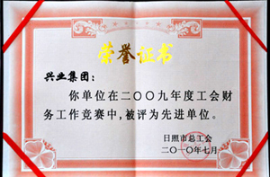·2010年7月,興業(yè)集團在2009年度工會財務(wù)工作競賽中,被日照市總工會評為先進單位