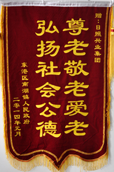 ·2014年元月,東港區(qū)南湖鎮(zhèn)人民政府贈于興業(yè)集團(tuán)“尊老敬老愛老,弘揚(yáng)社會公德”錦旗