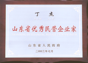 · 2003年7月,授予丁杰董事長“山東省優(yōu)秀民營企業(yè)家”榮譽稱號