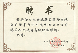 · 2003年7月,茲聘任丁杰董事長為日照市東港區(qū)人民政府高級經(jīng)濟顧問