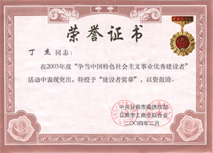 · 2004年2月,授予丁杰董事長“爭當中國特色社會主義事業(yè)優(yōu)秀建設(shè)者”