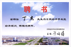 · 2005年2月2日,茲聘任丁杰董事長日照經(jīng)濟開發(fā)區(qū)經(jīng)濟顧問