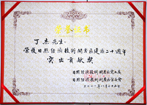 ·2011年8月25日,丁杰董事長榮獲“日照經(jīng)濟技術(shù)開發(fā)區(qū)建區(qū)20周年”突出貢獻獎