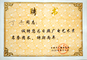 · 2007年11月,誠聘丁杰董事長為“日照廣電藝術(shù)團名譽團長”