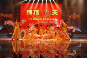 張開堅定的臂膀 擁抱希望的春天 “擁抱春天”興業(yè)集團2009年春節(jié)聯(lián)歡晚會隆重舉行 鼠去牛來辭舊歲,龍飛鳳舞慶新春。1月17日,“擁抱春天”興業(yè)集團2009年春節(jié)聯(lián)歡晚會在日照廣播電視演播大廳隆重舉行。丁杰、王建國、韓金軍、趙文強、劉永漢、申作華、李春賢等領導和集團工作標兵、先進工作者,及各分公司的職工代表500多人歡聚一堂,一同興致勃勃地觀看了演出。 整臺晚會在歡快、精彩、喜慶的歌伴舞《歡天喜地》中拉開了帷幕。旋律優(yōu)美的歌舞器樂表演《日照,我眷戀的故鄉(xiāng)》,深情的表達了興業(yè)人對家鄉(xiāng)的熱愛;公司王鵬的獨唱《今天》唱出現(xiàn)代人對生活的執(zhí)著追求;興業(yè)房產的姑娘們自編自演的舞蹈《趕海》,惟妙惟肖的表現(xiàn)出了海邊人的趕海樂趣。小品《牛老板買房》來源于生活、取材于銷售工作,通過小品中的牛老板對銷售人員的現(xiàn)場考驗,進而義無反顧的買興業(yè)房子這一主題,再現(xiàn)了興業(yè)房產旨在用服務贏得客戶,用真誠打動業(yè)主,堅持走品牌戰(zhàn)略的路線,小品演員逼真到位的表演逗的臺下的觀眾捧腹大笑;興業(yè)房產副總許愛華和興業(yè)世紀嘉園社區(qū)阿姨們帶來的太極拳和劍術表演,剛柔并濟,相得益彰,展示了人們對中華武術的傳承與喜愛;激昂高亢的男聲獨唱《愛不愛我》唱出了年輕人的激情,唱出了年輕人的執(zhí)著;小品《以愛的名義》講述了一名興業(yè)員工和他的妻子在汶川大地震發(fā)生后,無私捐款的感人故事,展示了興業(yè)員工崇高的精神境界;情到深處,臺下的觀眾無不為之潸然淚下。詩歌朗誦《讓抗震精神永遠激勵我們向前》將整臺晚會推向了高潮,通篇道出了興業(yè)人在汶川發(fā)生震災后,積極捐款、捐物、獻血、生產救災板房、赴川援建、幫助災區(qū)同胞重建家園的感人場景,表現(xiàn)了興業(yè)人在國家災難面前一馬當先、甘于奉獻的高度社會責任感。京韻大鼓《重整河山待后生》表達了對災區(qū)的美好祝愿;歌曲《中國龍》表達了興業(yè)人的愛國情懷;來自興業(yè)汽配的裴玉用近乎專業(yè)的唱功為大家演唱的歌曲《天路》和青島永杰公司表演的《新疆歌曲串燒》給我們帶來了別開生面的異域風情;伴著夢幻般音樂的魔術《畫中人》,其換衣玄機著實讓大家猜摸了一番;歌舞表演《走進新時代》歌頌了中國改革開放三十年的蓬勃發(fā)展,表達了興業(yè)人對祖國的無限熱愛;本場晚會的主題歌,原創(chuàng)歌曲《擁抱春天》充分展示了興業(yè)人團結協(xié)作、奮勇拼搏、共度寒冬、擁抱春天的堅定信心和美好祝愿,將晚會再次推向高潮。晚會最后在《明天會更好》的優(yōu)美旋律和對新年美好的祝福聲中落下了帷幕。 本場晚會全部是由興業(yè)集團員工自編、自演、自導,節(jié)目內容健康向上,突出原創(chuàng),充分體現(xiàn)了興業(yè)集團優(yōu)秀的企業(yè)文化和興業(yè)員工良好的精神風貌。 整臺晚會歷時近兩個小時,節(jié)目精彩紛呈,觀眾喜聞樂見。 據(jù)了解,“擁抱春天”興業(yè)集團2009年春節(jié)聯(lián)歡晚會將于春節(jié)期間在日照電視臺各頻道播出,將為全市人民奉獻一道精彩的文藝大餐。 |
