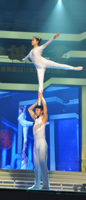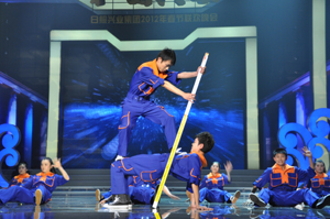 STAR》,引起全場(chǎng)雷動(dòng)歡呼;同德礦業(yè)公司選送的雜技《肩上芭蕾》驚險(xiǎn)刺激,來(lái)自北京雜技團(tuán)的年輕演員們?cè)谕榧绨蛏线~起輕盈的舞步,場(chǎng)下觀眾驚呼不已,拍手叫絕;臨汾志強(qiáng)鋼鐵公司的漢子們表演的威風(fēng)鑼鼓《堯天舜日》高亢激昂,令觀眾們心潮澎湃,更激發(fā)了大家開(kāi)創(chuàng)美好未來(lái)的激情和斗志。